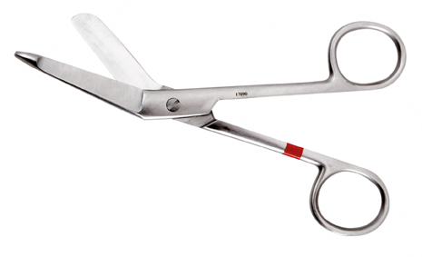 Verbandschere nach Lister, kniegebogen, aus Metall, 14 cm, einzeln steril verpackt